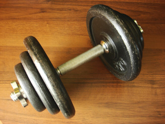 Sprzedam jedną hantlę (sztangielkę) o ciężarze 17,5 kg Gryf metalowy niklowany, pierścienie zaciskające też ...